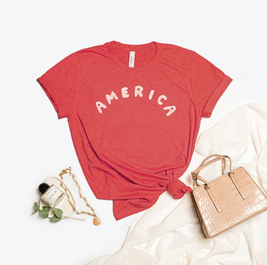 America Graphic Tee-Heather Red