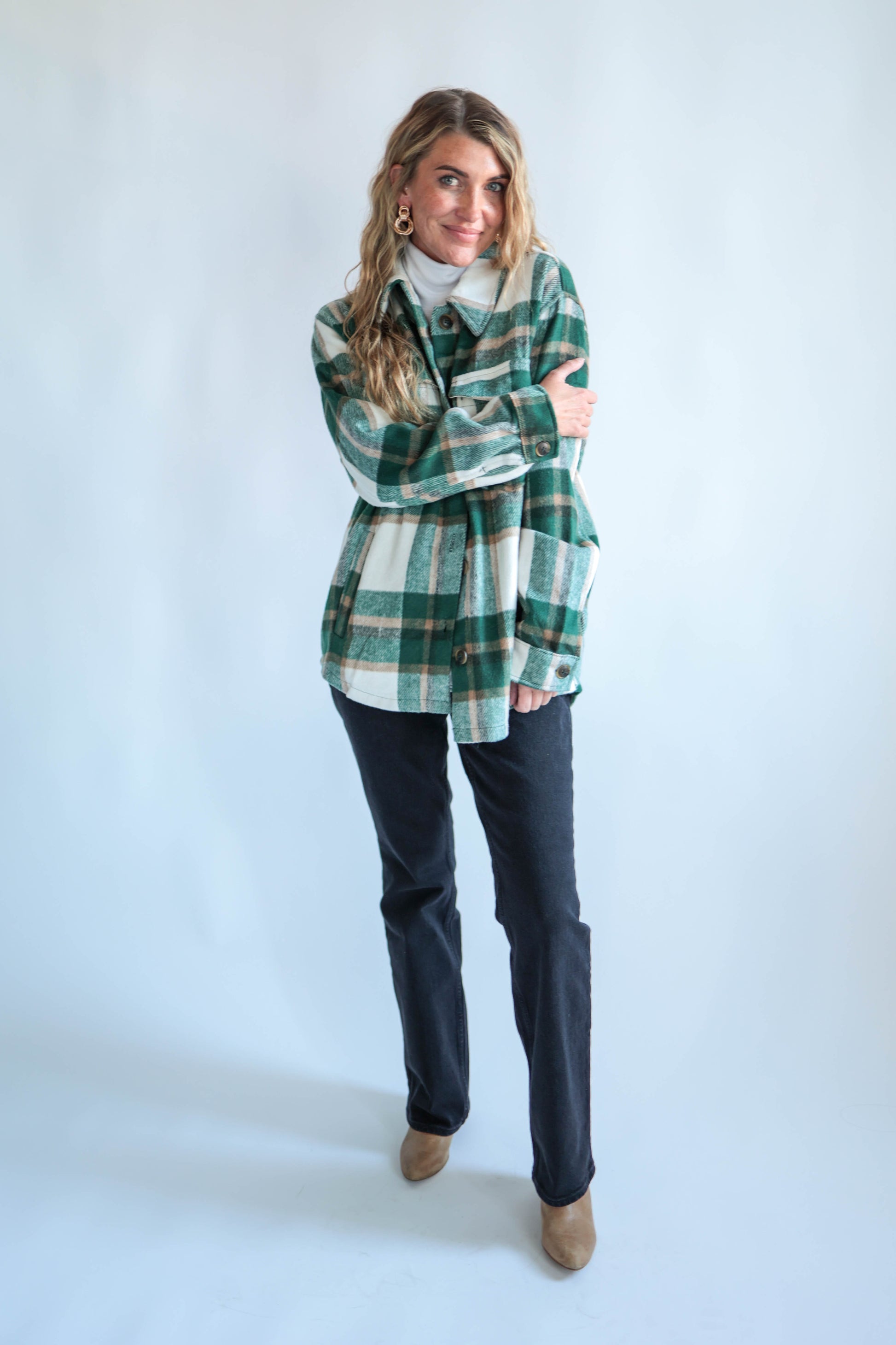 Get ready for an adventure with our Hunter Green Plaid Shacket! This versatile piece combines the rugged look of a shirt with the warmth and comfort of a jacket. You'll love the unique hunter green plaid design and the perfect balance of style and functionality. Don't miss out on this must-have addition to your wardrobe!