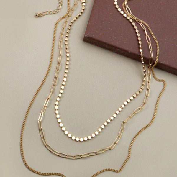 Here is a sophisticated Pretty and practical multi chain necklace that has a unique round chain and link chain.